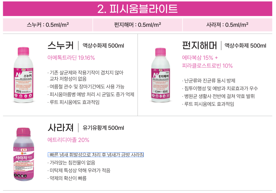 눈이 오래 쌓이면 눈곰팡이병(스노우몰드)이 발생할 수 있습니다.대책: 눈이 녹은 후 피해를 방지하기 위해 살균제를 사전에 살포.