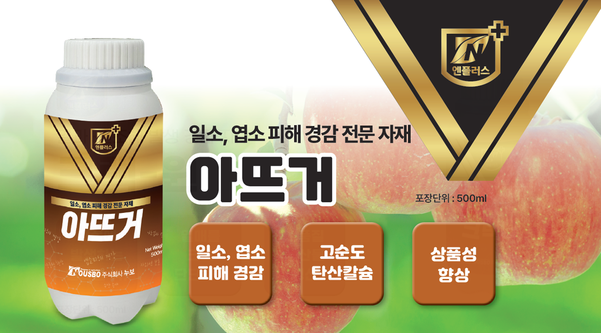 아뜨거 처리 시 사과와 잎에 균일하게 묻어 일소 현상뿐만 아니라 엽소현상도 감소함