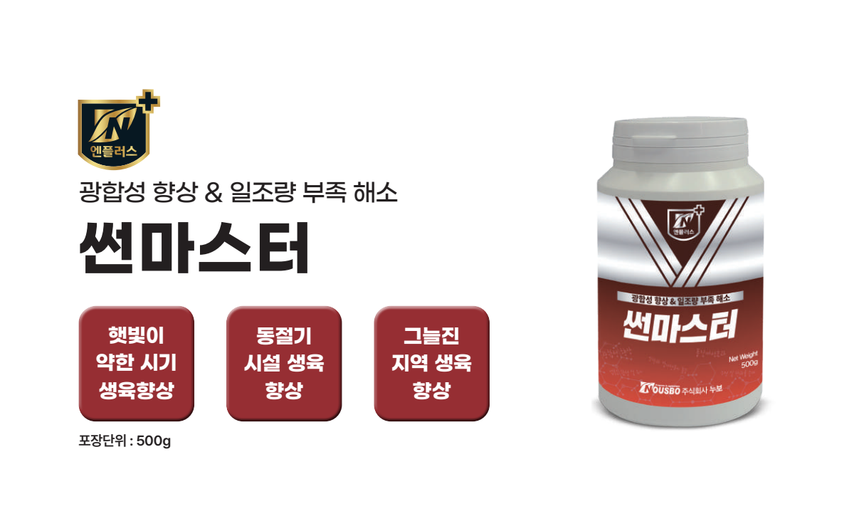 썬마스터는 광증감제를 함유하여 일조량이 부족한 지역, 시기에 광합성을 향상시켜주는 제품입니다.