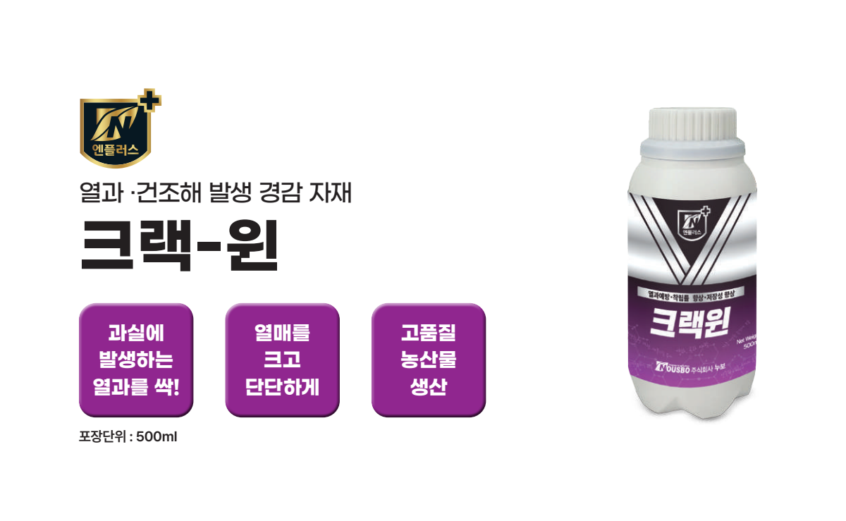 크랙-윈은 불량환경에서 유발되는 과실의 열과 경감시켜주는 데 도움을 주는 자재입니다.