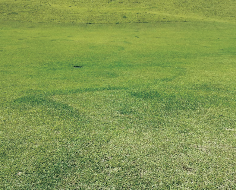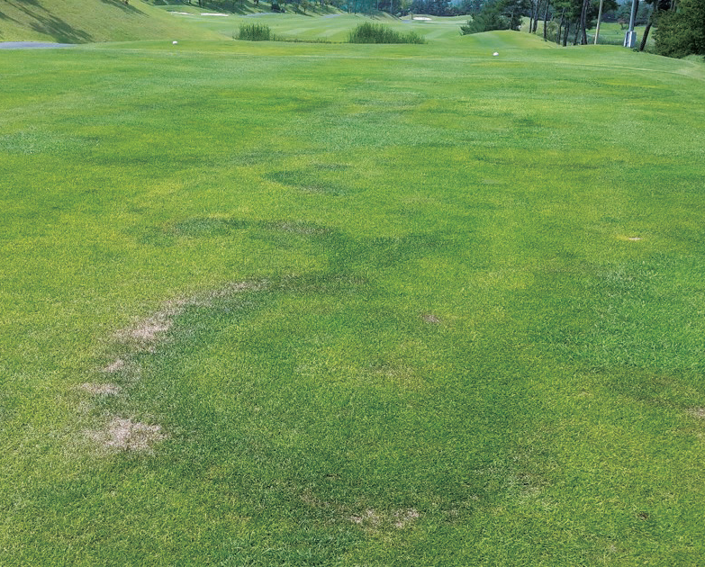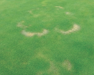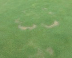 토양과 대취의 소수성으로 인해 잔디가 패치, 링 및 아크 형태로 고사가 진행됨
