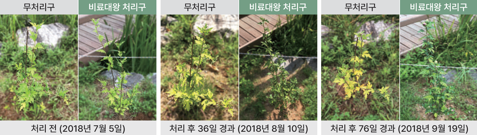 처리 방법 : 2018년 5월 중순 묘목 식재, 비료대왕 50g/㎡ 처리