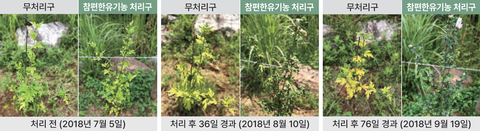 처리 방법 : 2018년 5월 중순 묘목 식재, 참편한 100g/㎡ 처리