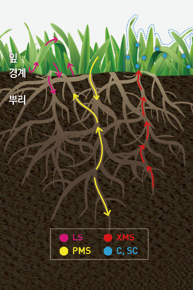 잎(지상부), 지제부 흡수
