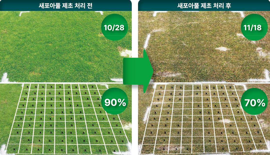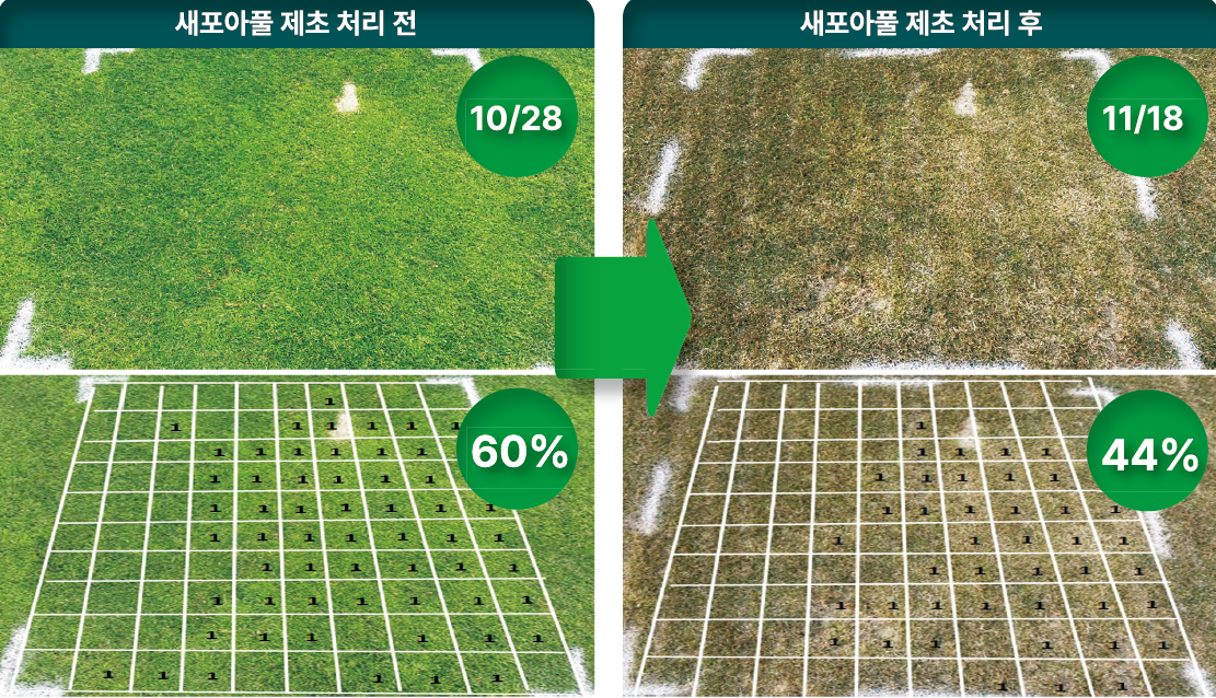 01. 새포아풀의 밀도를 점진적으로 감소시켜 켄터키 블루그라스가 우점 하도록 유도