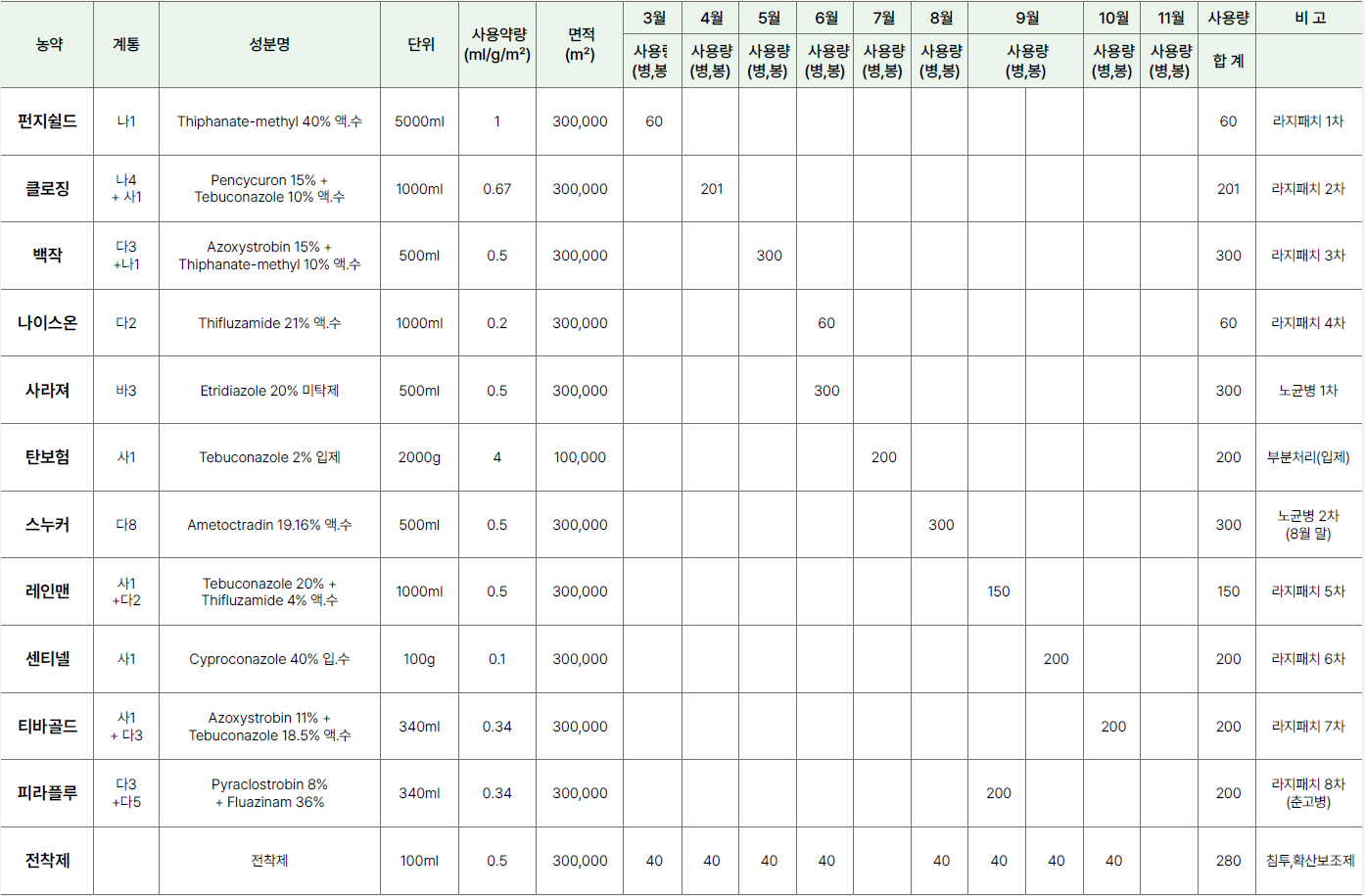 라지패치 & 노균병병 방제 산출내역