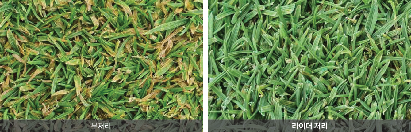 라이더 처리 후 지속적인 예지로 인해 처리된 부분이 잘려 나감에 따라 감소하는 효과를 보완하기 위해 생장조정제와 혼용 처리시 생장조정제의 생장억제 효과로 라이더의 효과를 지속시켜 줍니다.