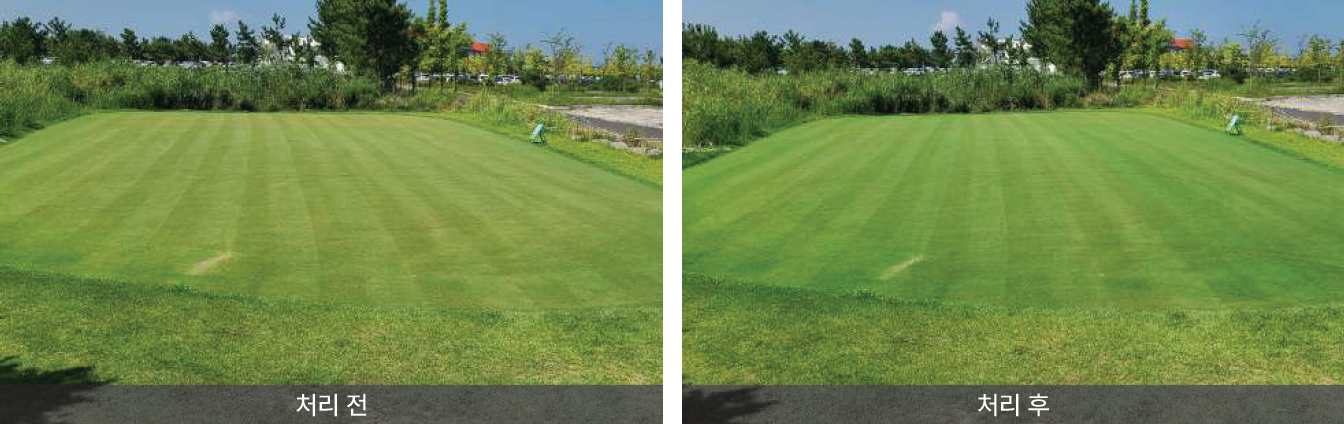 살균제와 혼용 처리시 빠르게 흡수되어 살균제의 효과를 활성, 지속시켜 주어 잔디의 품질을 더욱 향상시켜 줍니다.