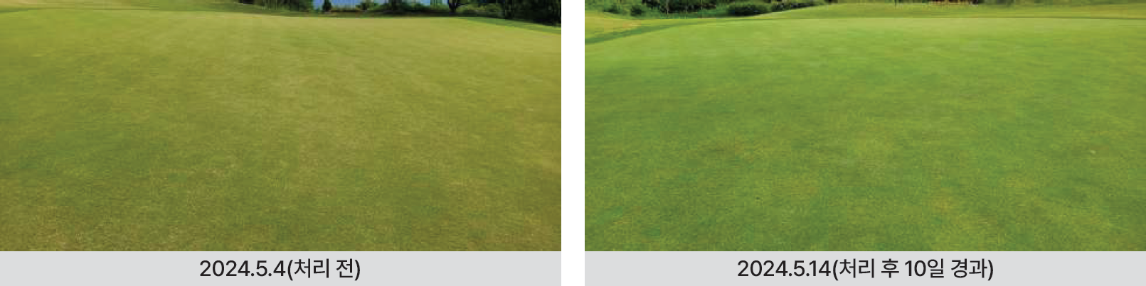 결과 : 터프액션 살포 후 잔디의 색상과 품질이 향상